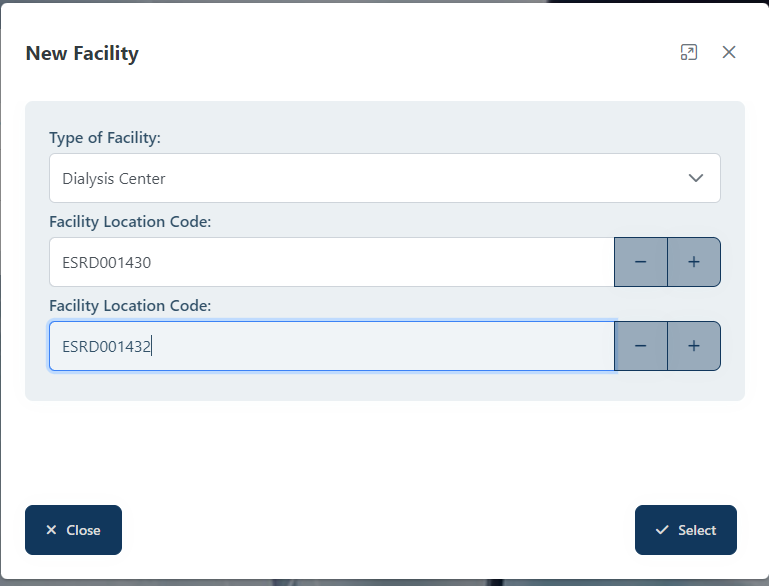 Select the facility type and add codes from the state data set that are of that facility type. Multiple codes can be added to one group by clicking the + button.