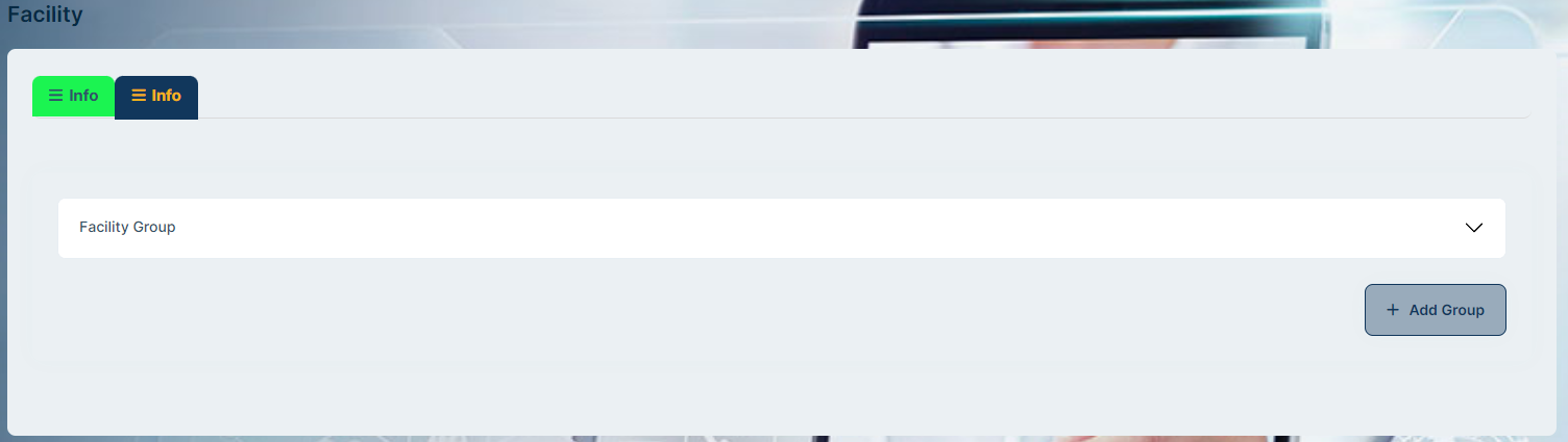 Facilities can be updated/edited on the Facility page by clicking the Actions button and edit. Once on the Facility page click the second Info tab and click the Facility Group Drop downs to edit. Be sure to click save after making any changes.