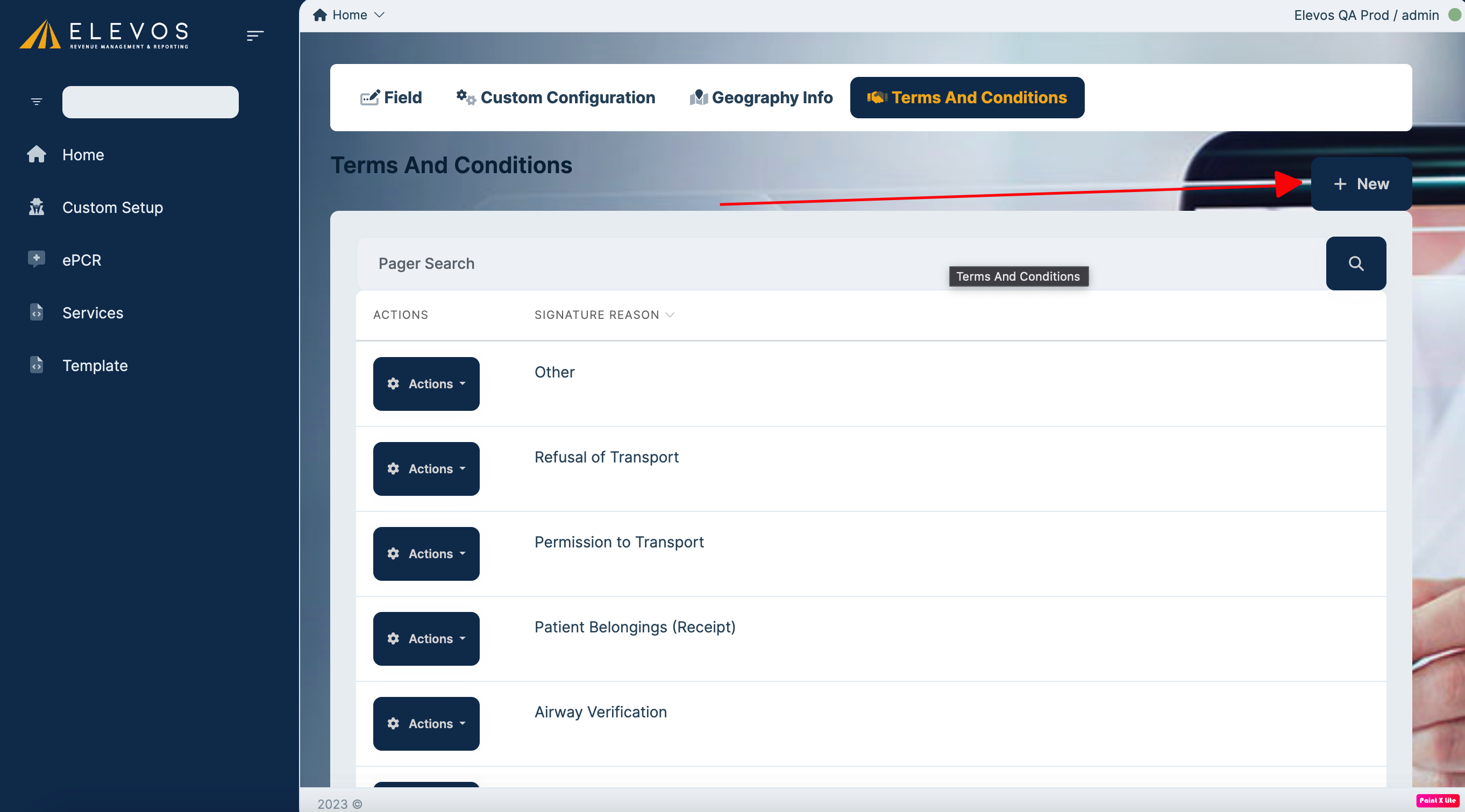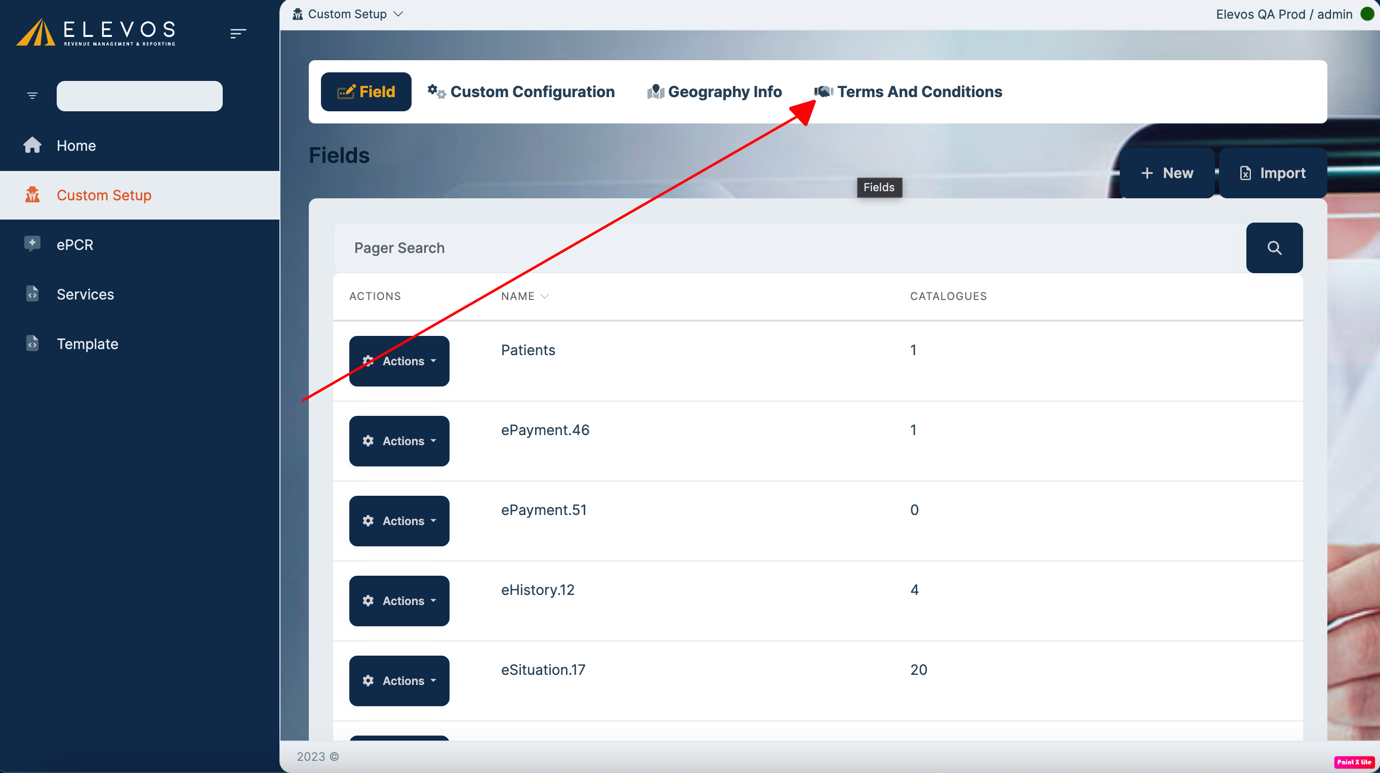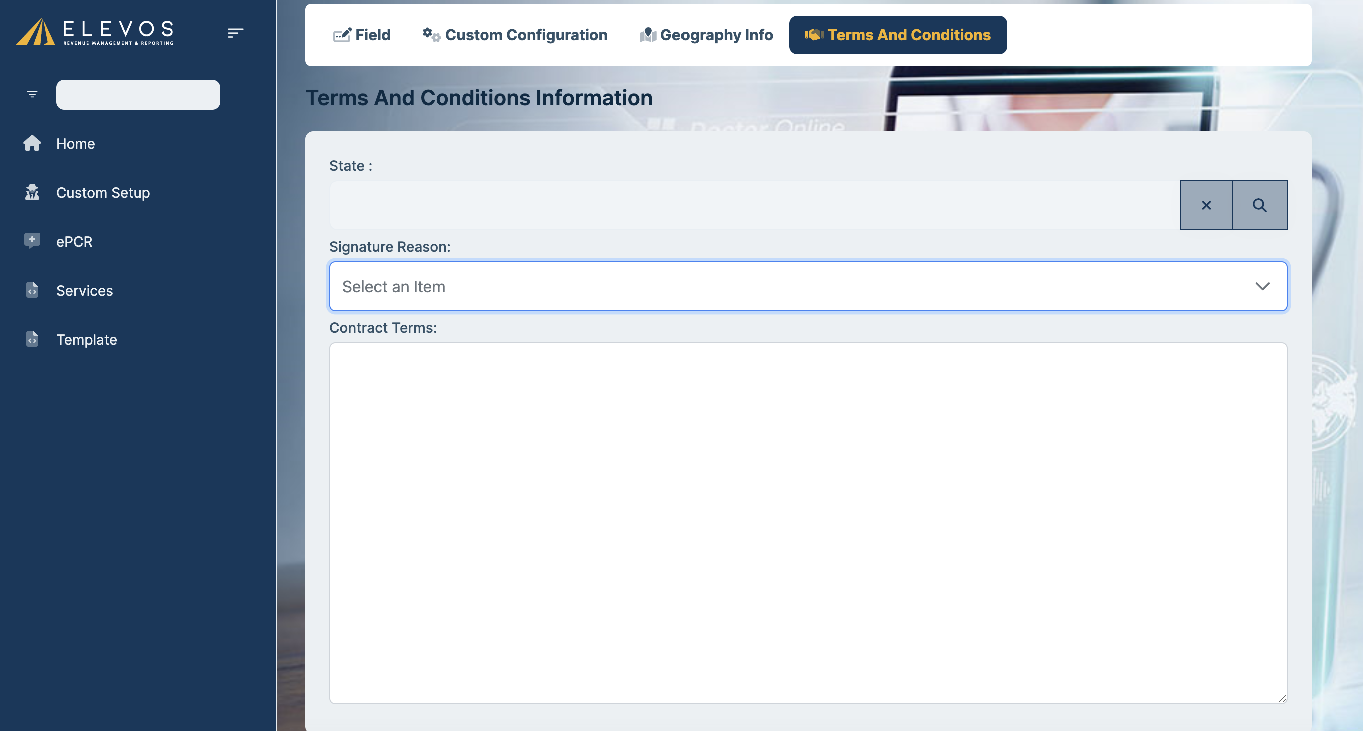 We will have to access custom setup and navigate to the terms and conditions tab.
