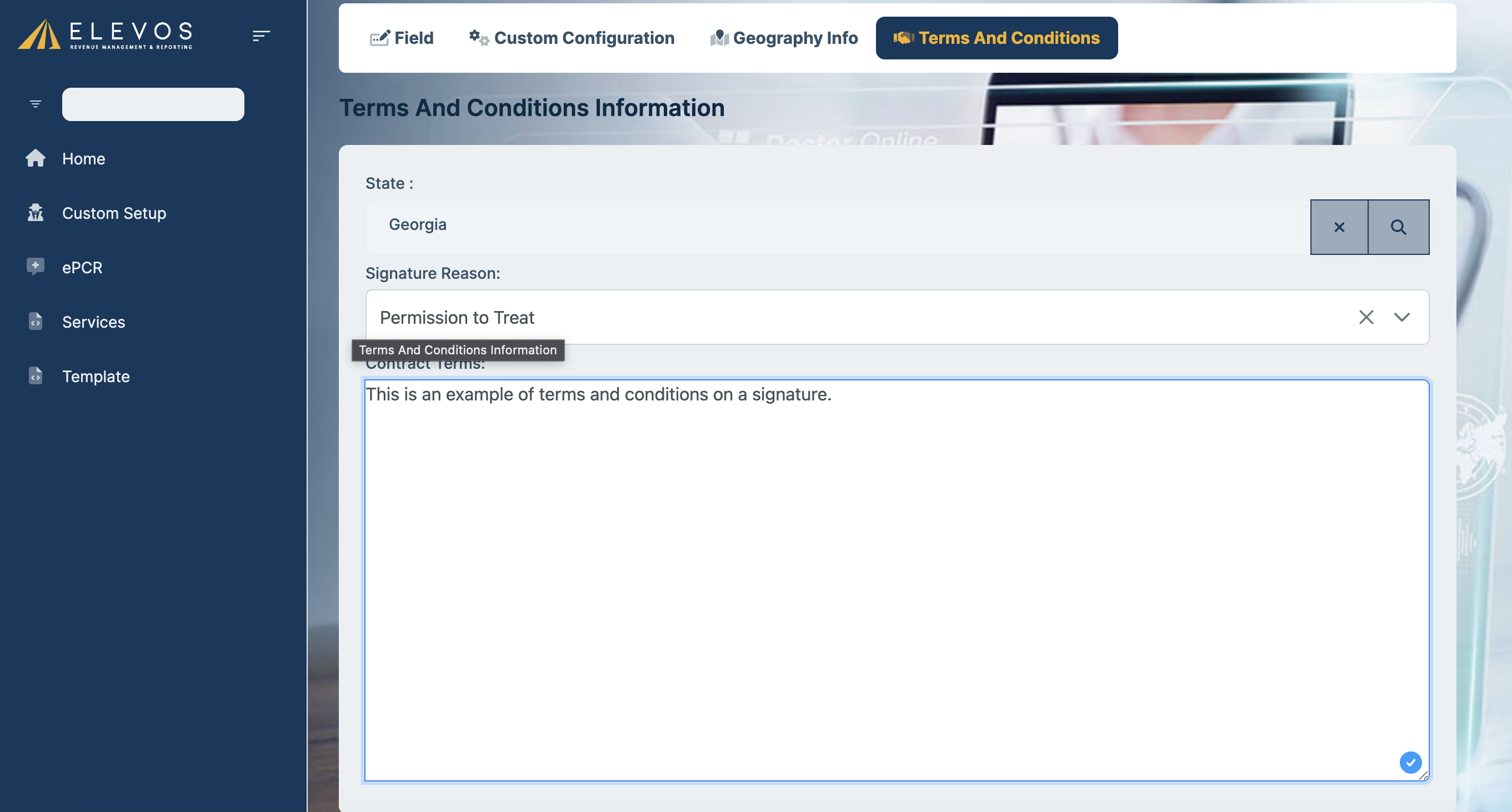 And on the following page you will need to select the state which you're agency's at, the reason for signature, and input the terms and conditions.