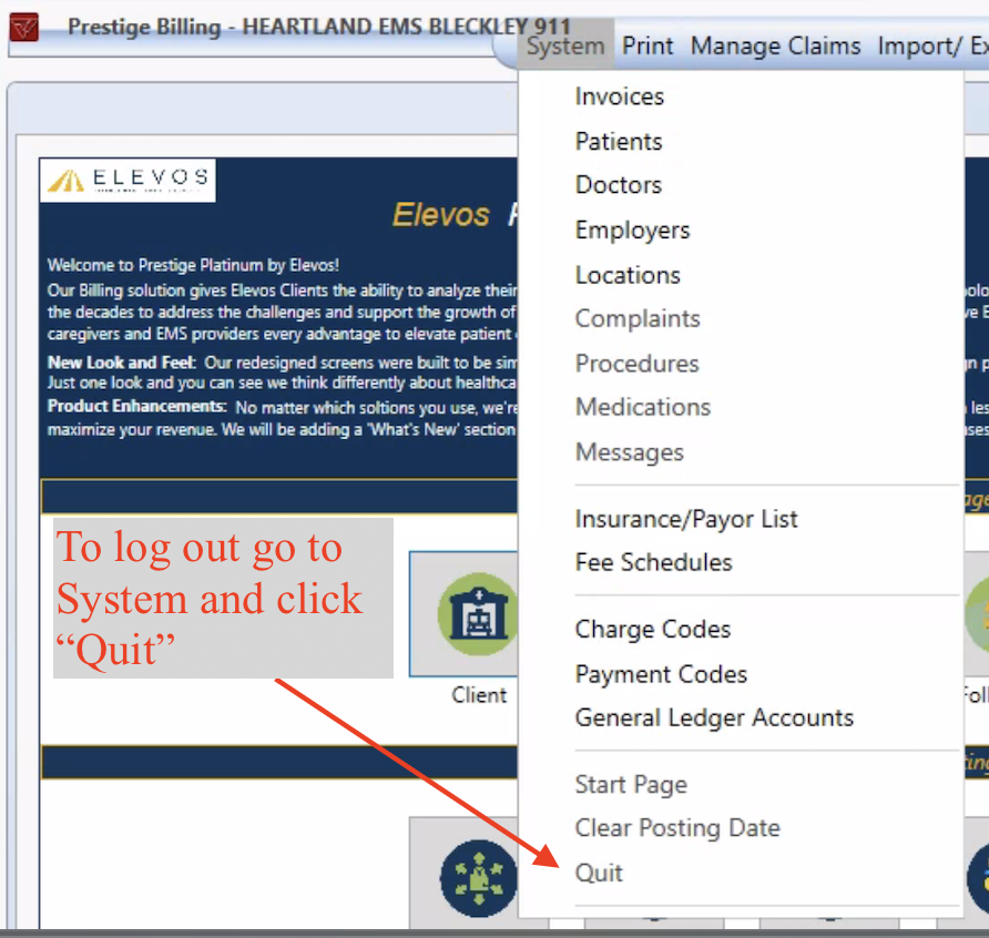 To manually send runs to billing you must begin by being logged into ePCRIV. Once logged in navigate to the "Services" tab on the left. Once on the "Services" page click on the "Elevos Billing" tab on the right. Once on the "Elevos Billing" page ...